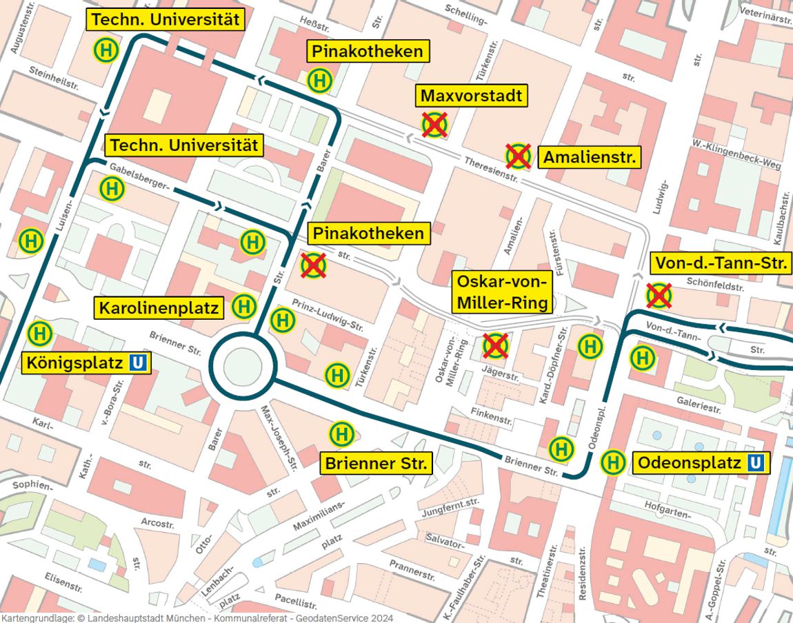 In den "Störungsmeldungen" ist der neue Linienweg samt Haltepunkten auch angekündigt - die neue Haltestelle ist in der Tat recht nah zur Haltestelle am Karolinenplatz.Beobachter2 hat geschrieben: ↑10 Dez 2025, 13:03An der Einmündung der Türkenstraße in die Brienner Straße stehen provisorische Haltestellenschilder. So weit westlich hätte ich es nicht vermutet.Beobachter2 hat geschrieben: ↑29 Nov 2025, 17:59Ob man es in den zwei verbleibenden Wochen noch schafft, zumindest den notwendigen Teil der "Haltestellenmöblierung" für die neue Hst "Brienner Straße" zu installieren?Nordlicht hat geschrieben: ↑26 Nov 2025, 18:14 ...